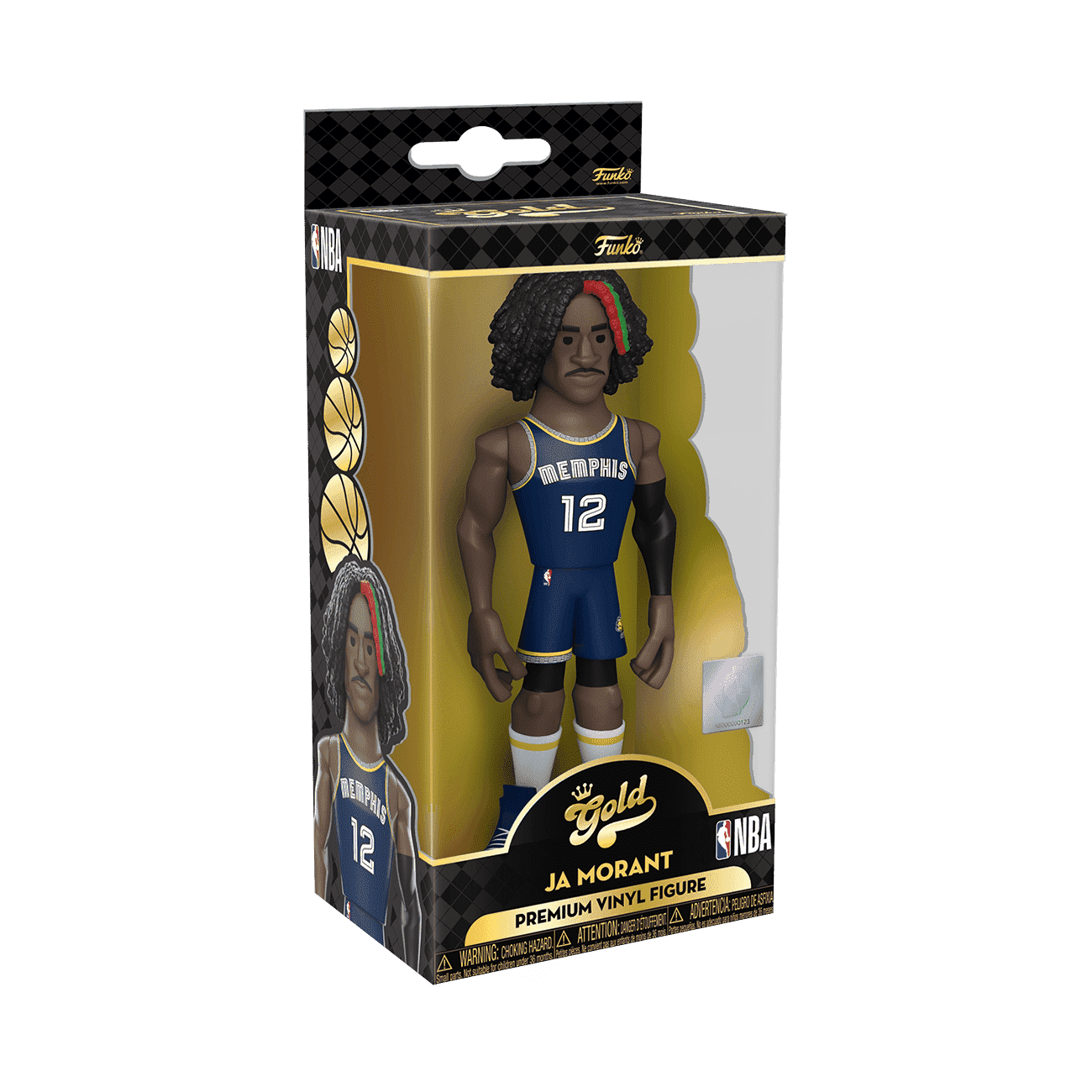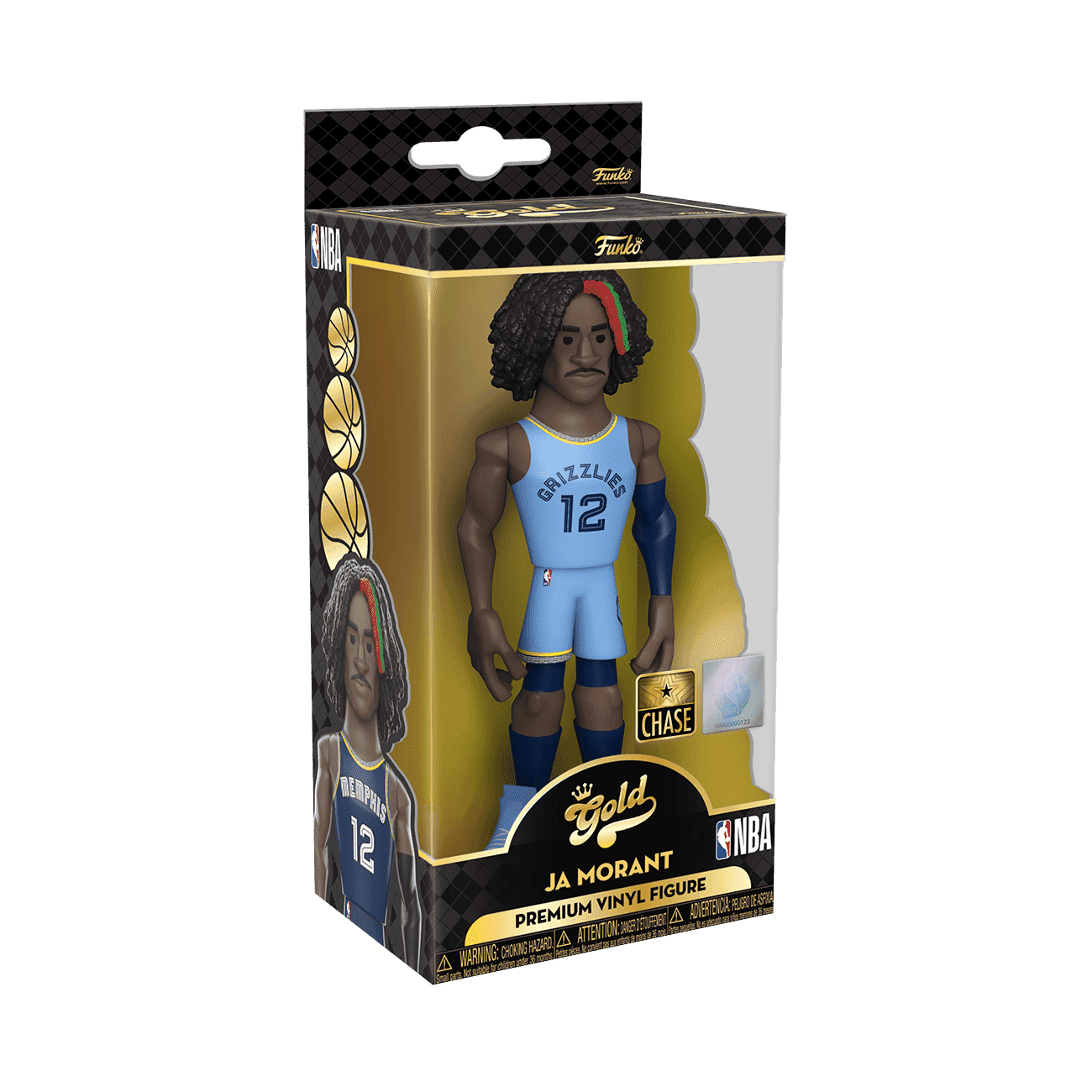 Score a slam dunk for your National Basketball Association collection with the new Funko GOLD Ja Morant. This 5-inch tall collectible of Ja Morant has him dressed in his Grizzlies home uniform. There’s a 1 in 6 chance that you may find a chase of Ja Morant dressed in his statement uniform. GOLD is the perfect way to commemorate some of your favorite, legendary NBA players in your collection, and each figure comes in a sleek, display-ready box that is easy to stack with other GOLD collectibles. Vinyl figure is 5-inches tall.
