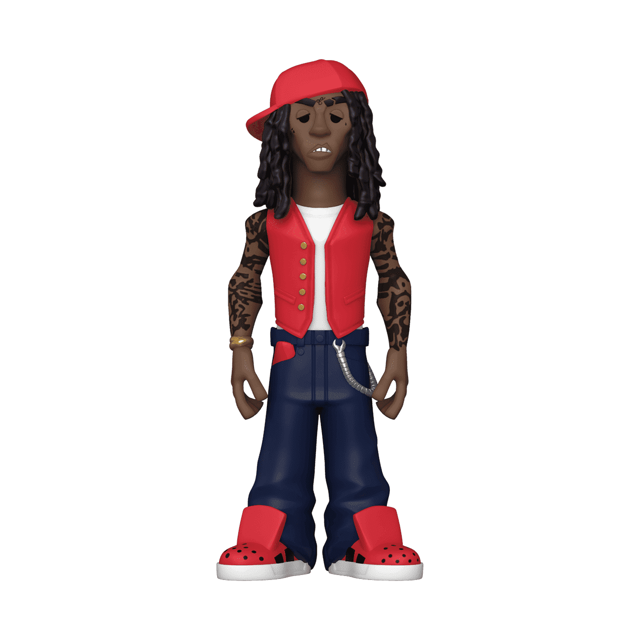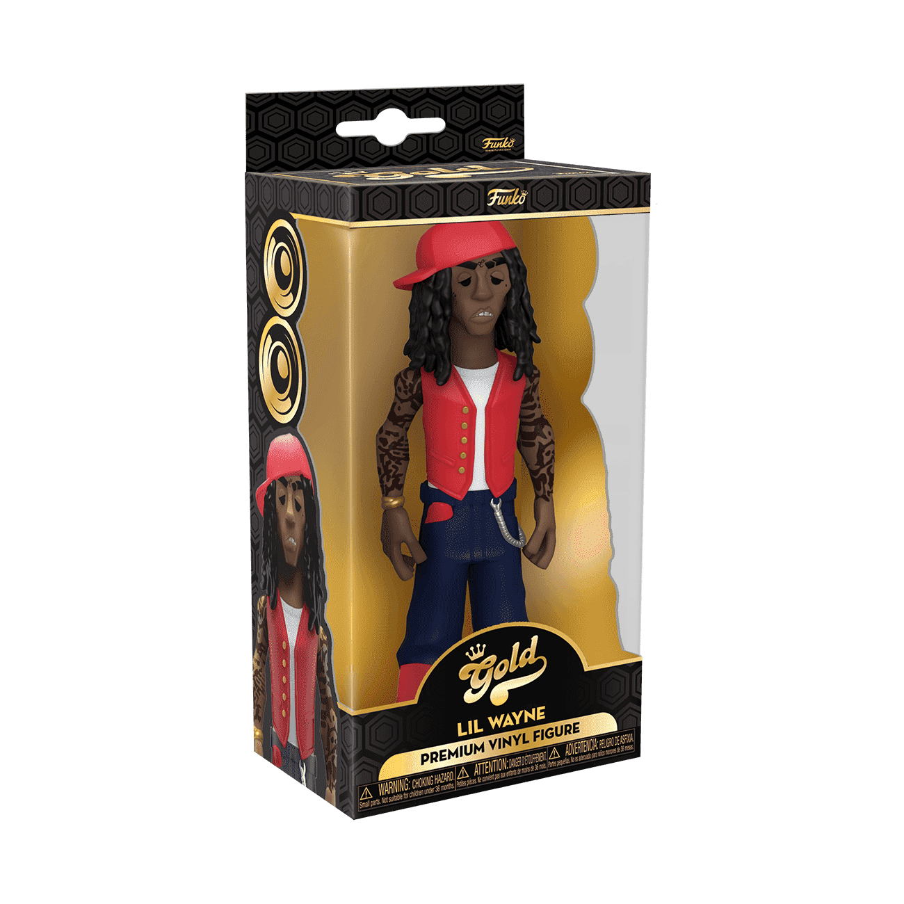 Go for GOLD in your music collection with the new Funko GOLD Lil Wayne premium vinyl figure. Lil Wayne is wearing his classic red vest outfit for this 5-inch tall collectible. GOLD is the perfect way to commemorate some of your favorite, iconic music artists in your collection, and each figure comes in a sleek, display-ready box that is easy to stack with other GOLD collectibles. Vinyl figure is 5-inches tall.
