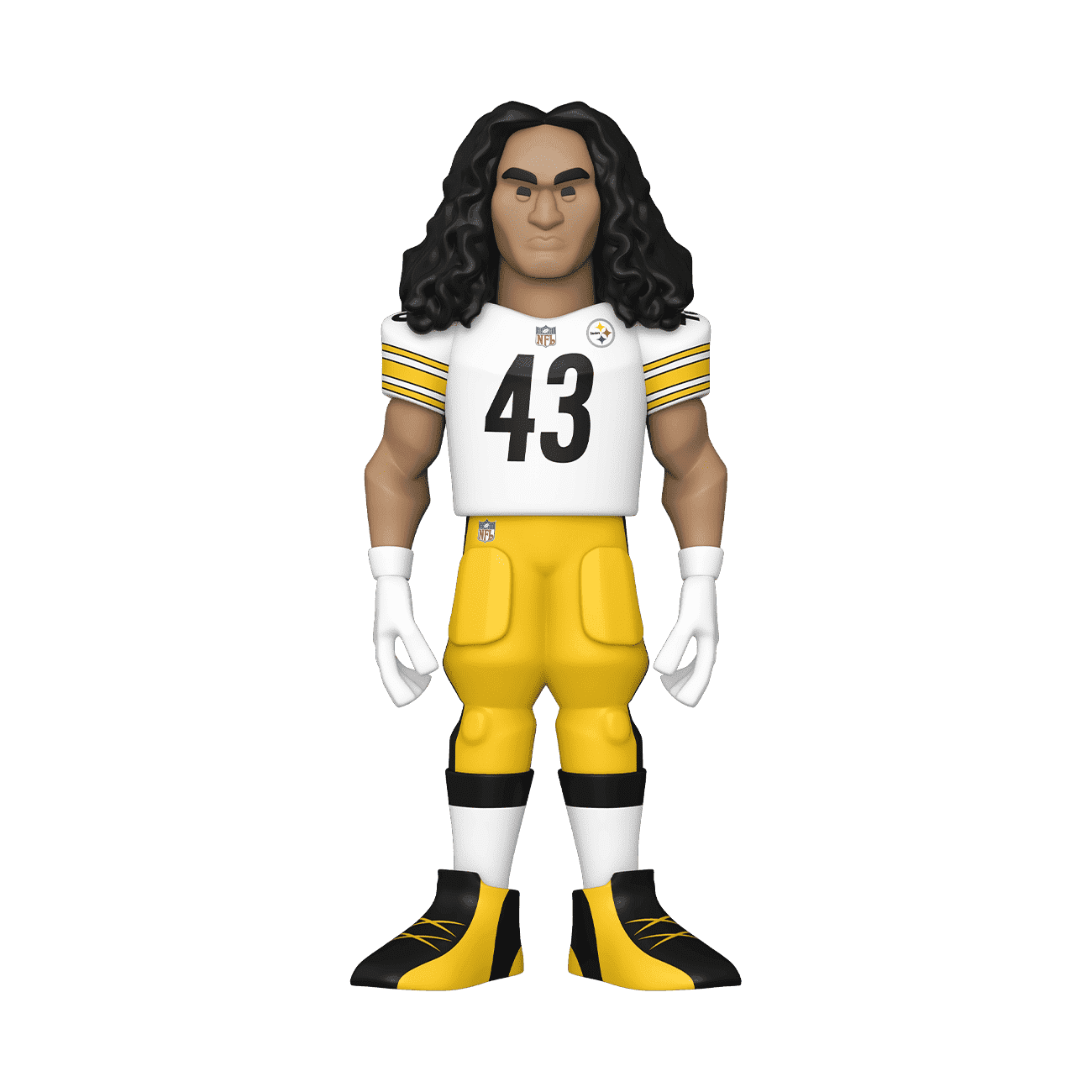 Score a touchdown for your National Football League collection with the new GOLD Troy Polamalu premium vinyl figure. This 5-inch tall collectible of Troy Polamalu has him dressed in his black and yellow Pittsburgh Steelers uniform.