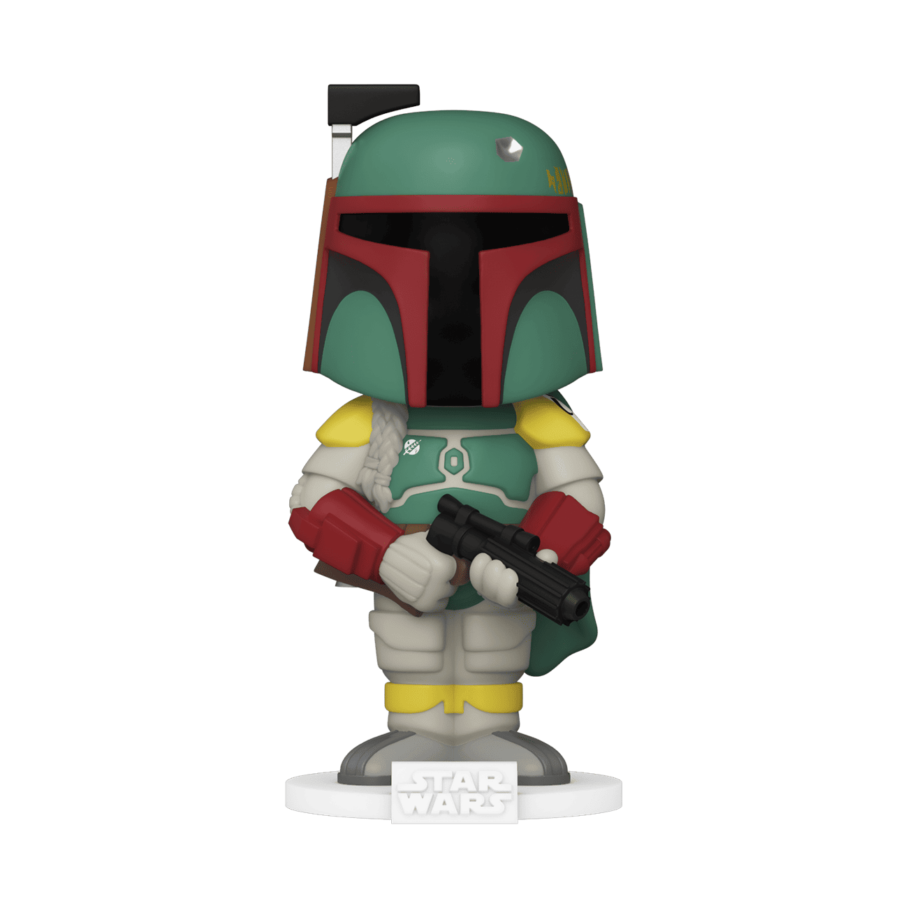 Celebrate the most stellar fandom of them all with Star Wars Boba Fett as a Soda figure. There’s a 1 in 6 chance you may find the Proto Boba Fett chase. Only 15,000 of this collectible were made. Bobblehead comes attached to a collectible stand and is approximately 4 in (10.2 cm) tall.