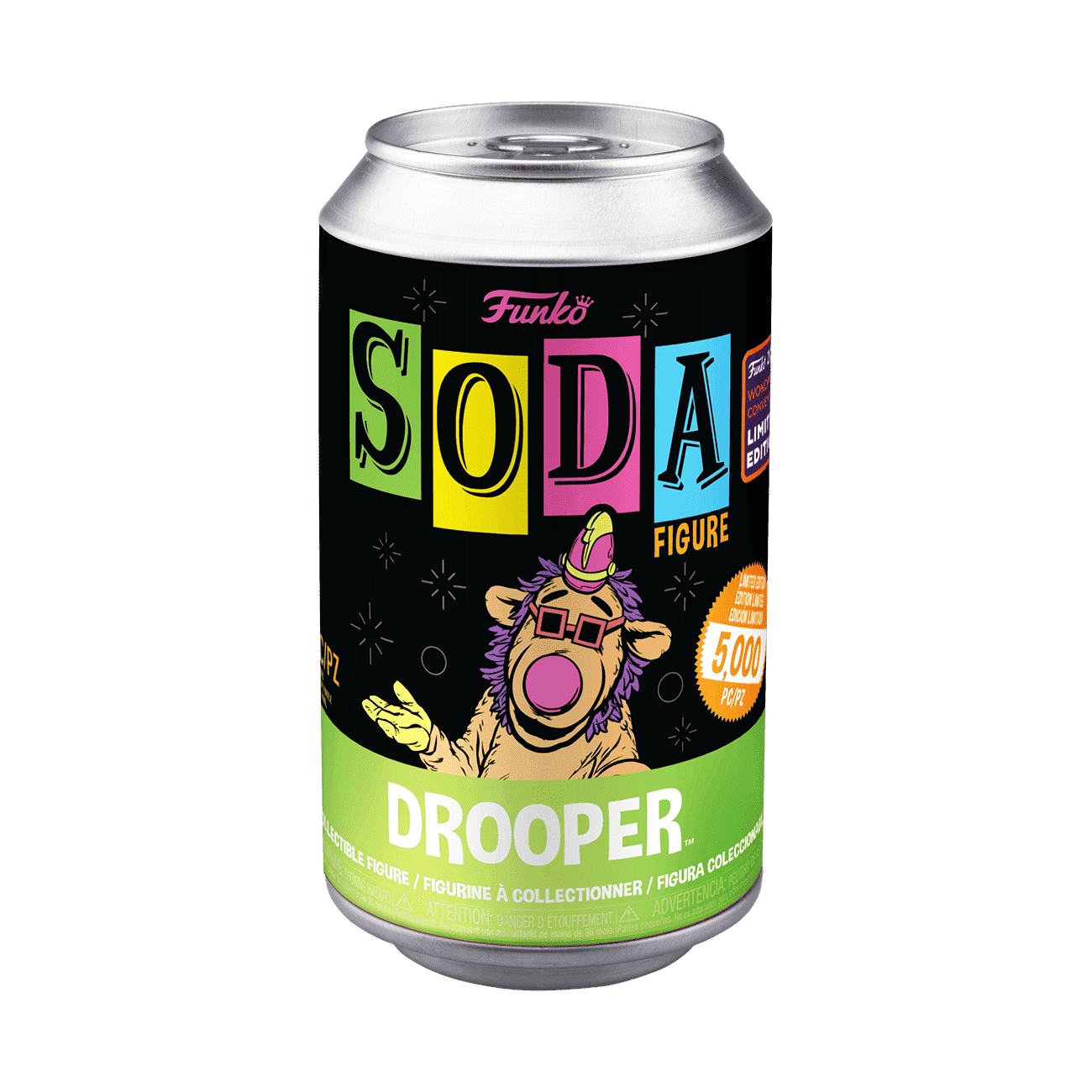Tra la la! Keep up with Drooper from The Banana Splits as an exclusive Funko Soda vinyl figure. Drooper is ready for fun and adventures in bright, neon black light colors. There’s a 1 in 6 chance you may find a variant color scheme chase of Drooper. Only 5,000 of this collectible were made. Vinyl black light figure is approximately 4 in (10.2 cm) tall.