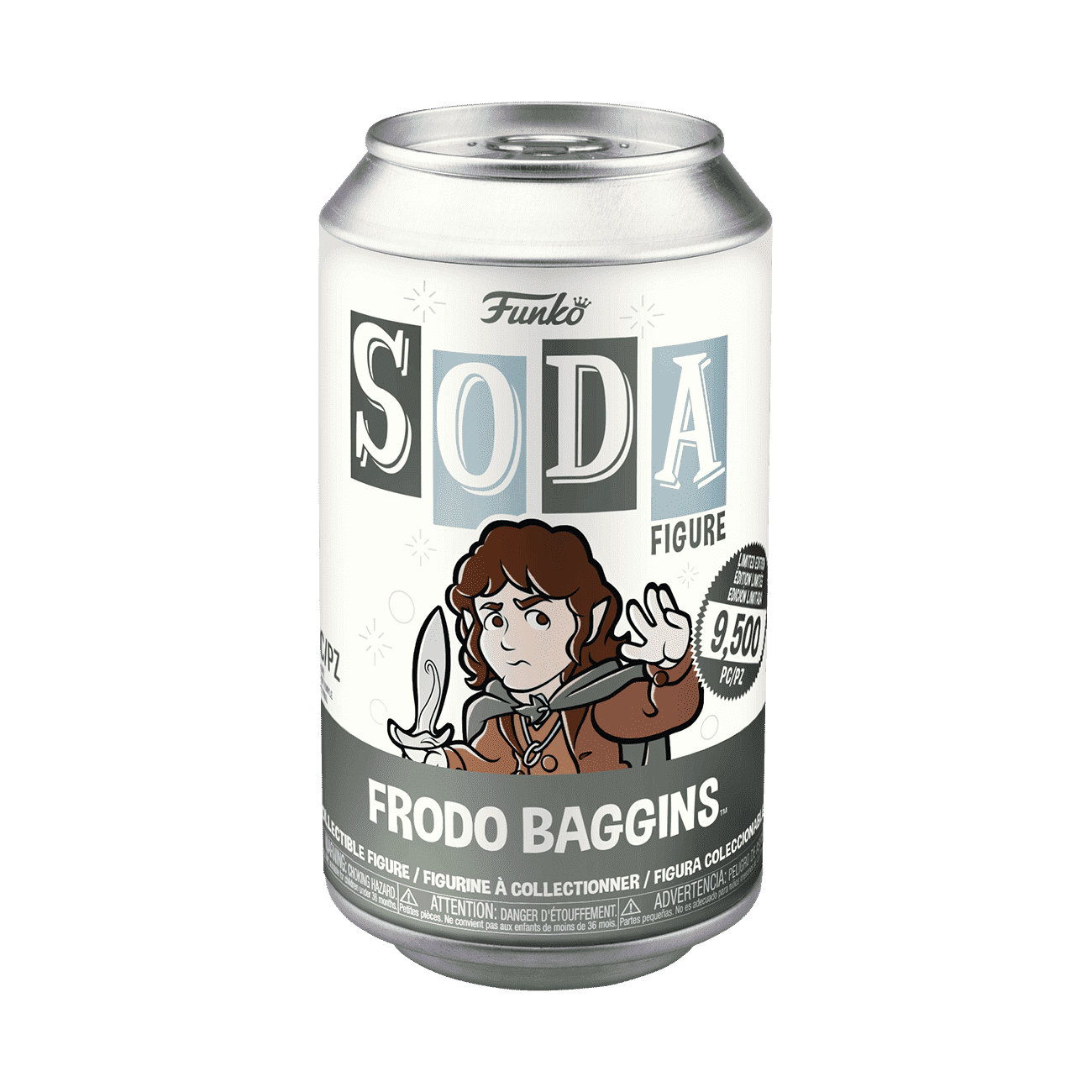 Carry the weight of the One Ring and expand your The Lord of the Rings collection with Funko Vinyl SODA Frodo. Only 9,500 of this collectible were made! There’s a 1 in 6 chance you may find the chase of Frodo with Hood. Vinyl figure is approximately 3.4 in (8.6 cm) tall.