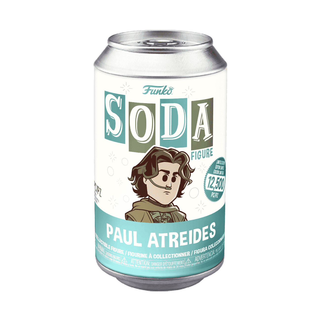 As you travel the dune sea of Arrakis, be on the lookout for sandworms! Paul Atreides is ready to explore new worlds as this Funko Soda figure. Wearing a Fremen stillsuit, Paul is learning ways to combat the planet’s harsh conditions. Only 12,500 of this collectible were made and there’s a 1 in 6 chance you may find the chase of Paul Atreides with blue eyes holding a crysknife. Bring the chosen one home to complete your Dune collection. Vinyl figure is approximately 4 in (10.2 cm) tall.