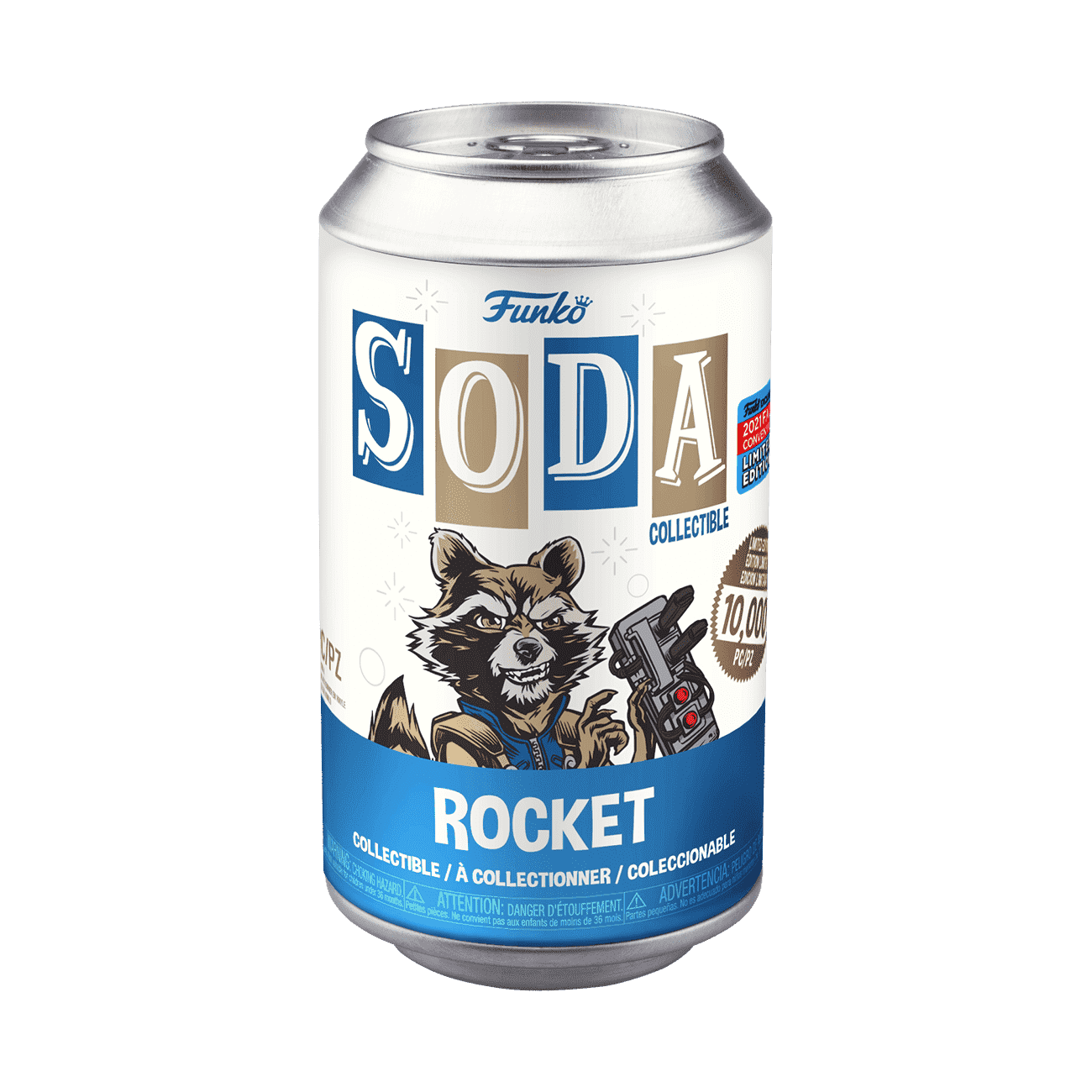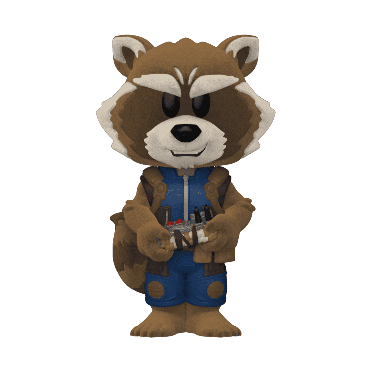 Collect Rocket Racoon as a 2021 New York Comic Con exclusive Funko Soda figure to complete your Marvel Guardians of the Galaxy Vol. 2 collection. Only 10,000 of this collectible were made and there's a 1 in 6 chance you could find the flocked chase. Vinyl figure is approximately 3.15 in (8 cm) tall.