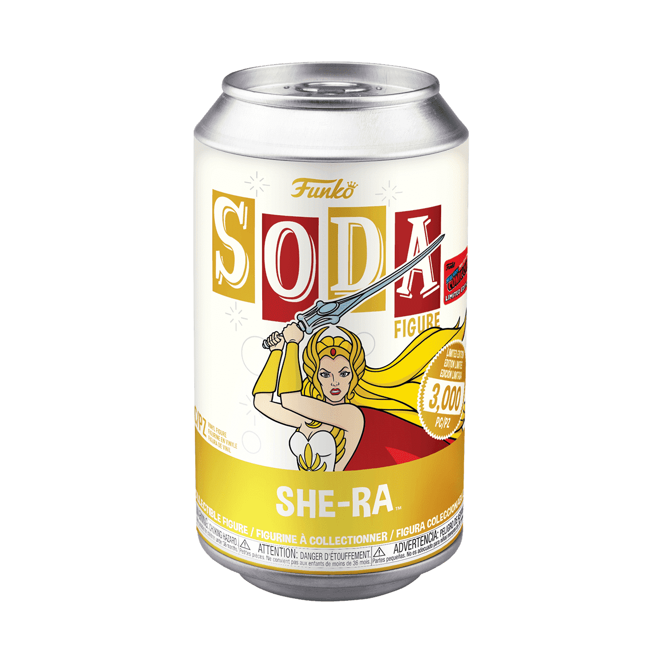 Enlist She-Ra into your Masters of the Universe Funko Soda figure collection to lead the fight against evil trying to take over Eternia and Etheria. There's a 1 in 6 chance you'll find the glitter chase. Vinyl figure is limited to 3,000 pieces,
