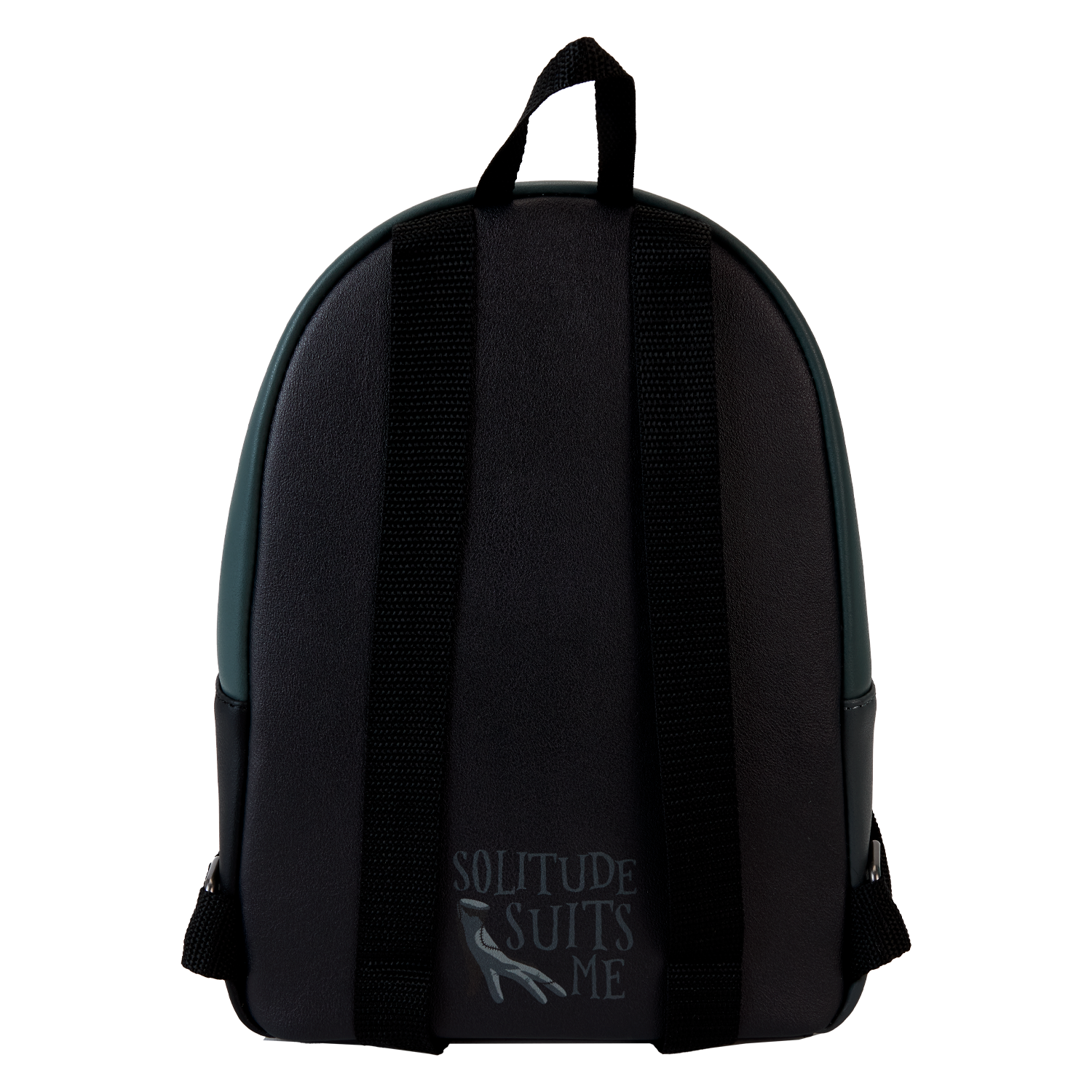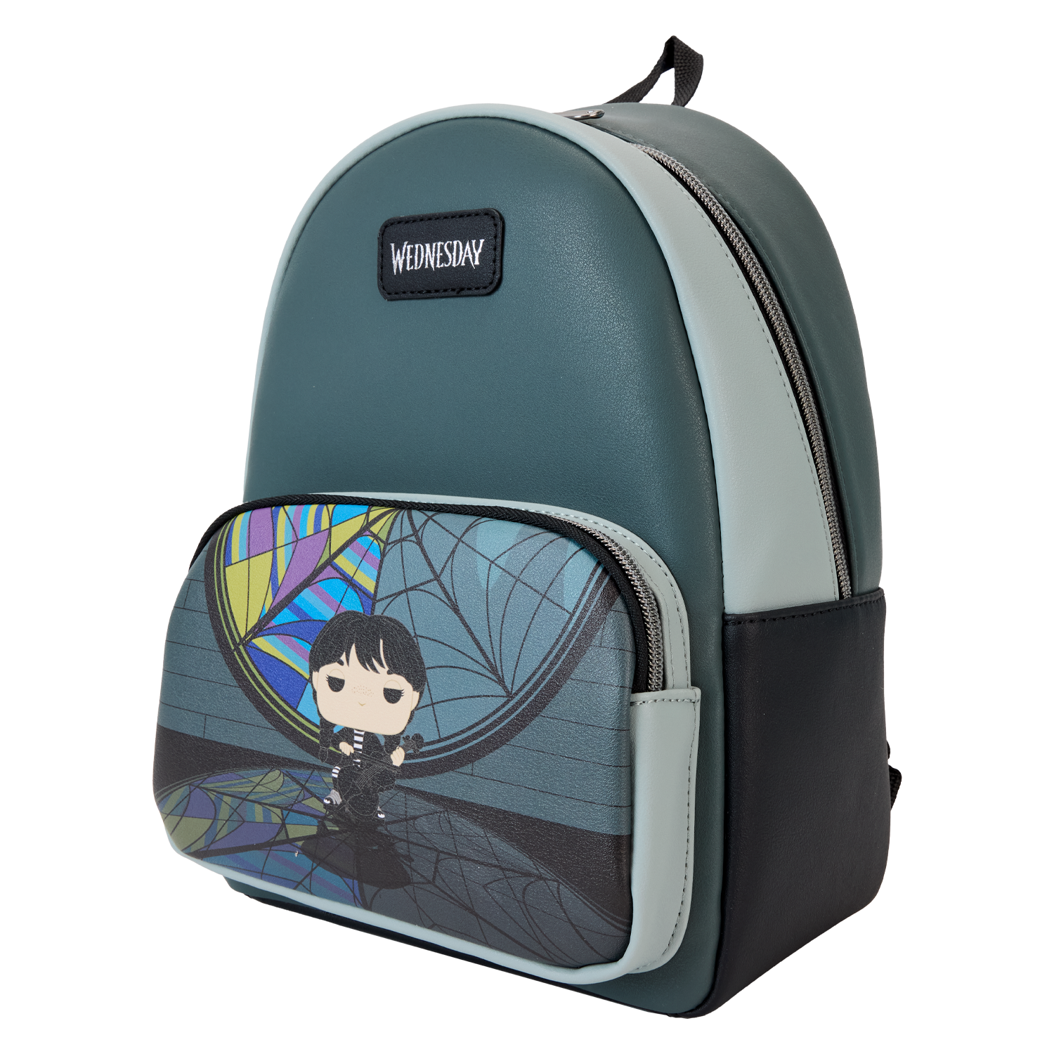 Stroll the halls of Nevermore Academy in style with the Wednesday Funko Mini Backpack! The front pocket of this black and grey mini backpack features POP! Wednesday Addams performing a cello solo, illuminated by her dormitory window. This eerie accessory has plenty of room for holding all of your belongings whether you are on your way to class or picking up a new extracurricular!