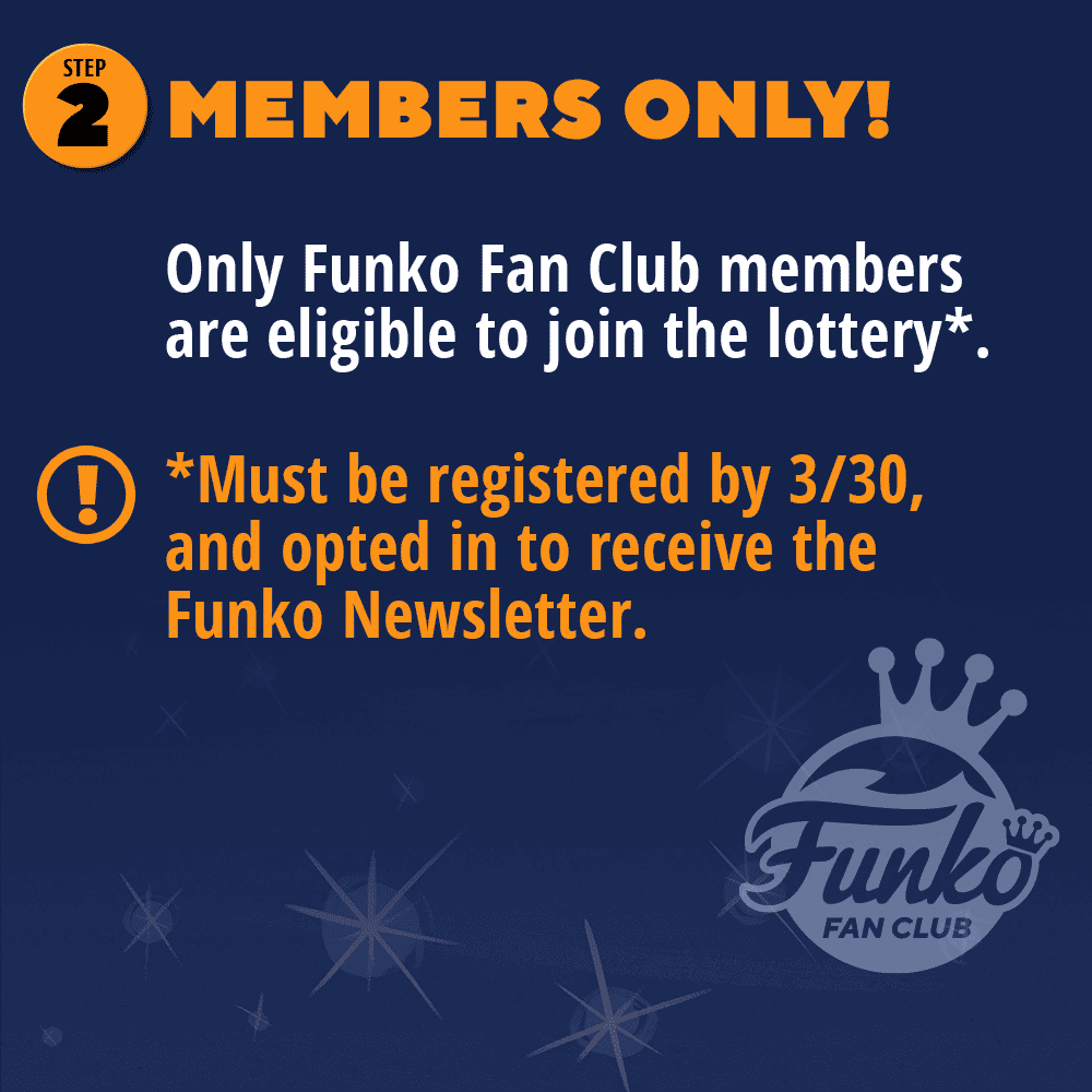 - Funko will use the email registered to your Funko Fan Club membership. The registered email to your account must be a valid/deliverable email in order to be entered into the lottery.