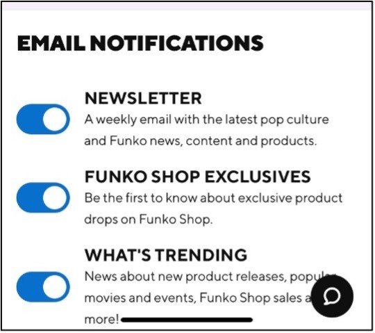 3. Opt into receiving the Newsletter. We will be asking Funko Fan Club Members to opt into our Wondrous Con candidate pool via email and choosing our winners from that pool, so please make sure you've signed up to receive the Funko Newsletter. You can verify this under Notification Preferences on your Funko.com account page.
