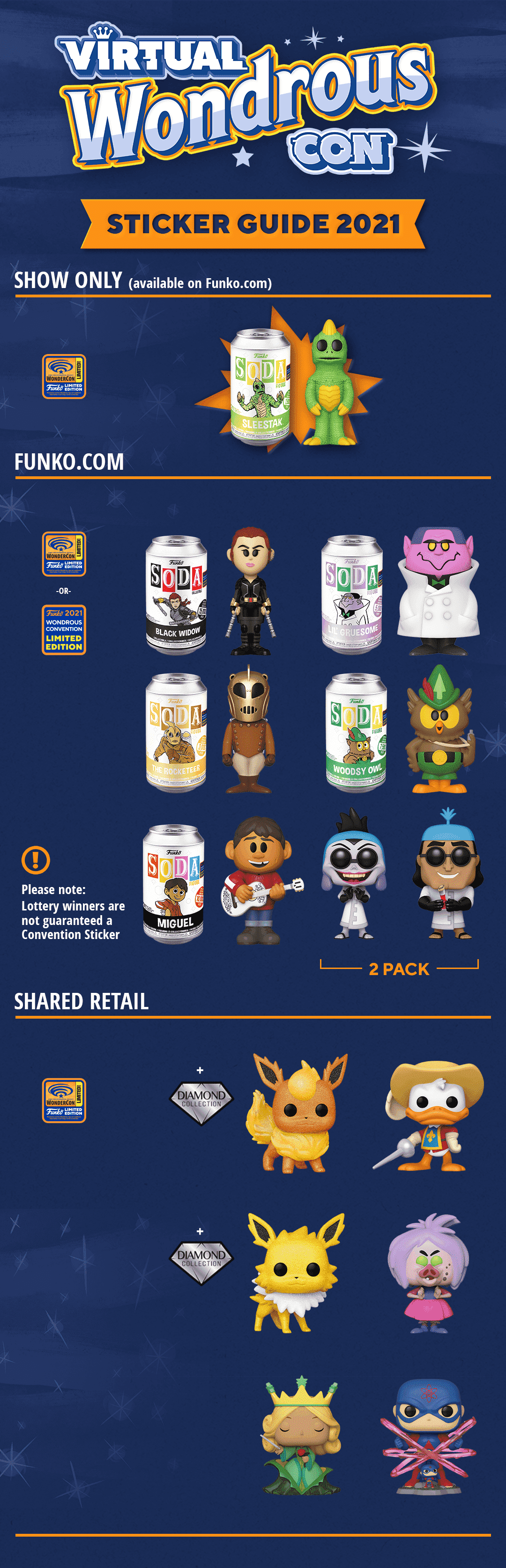 Please note: There is no guarantee which sticker you will receive for the funko.com exclusives.