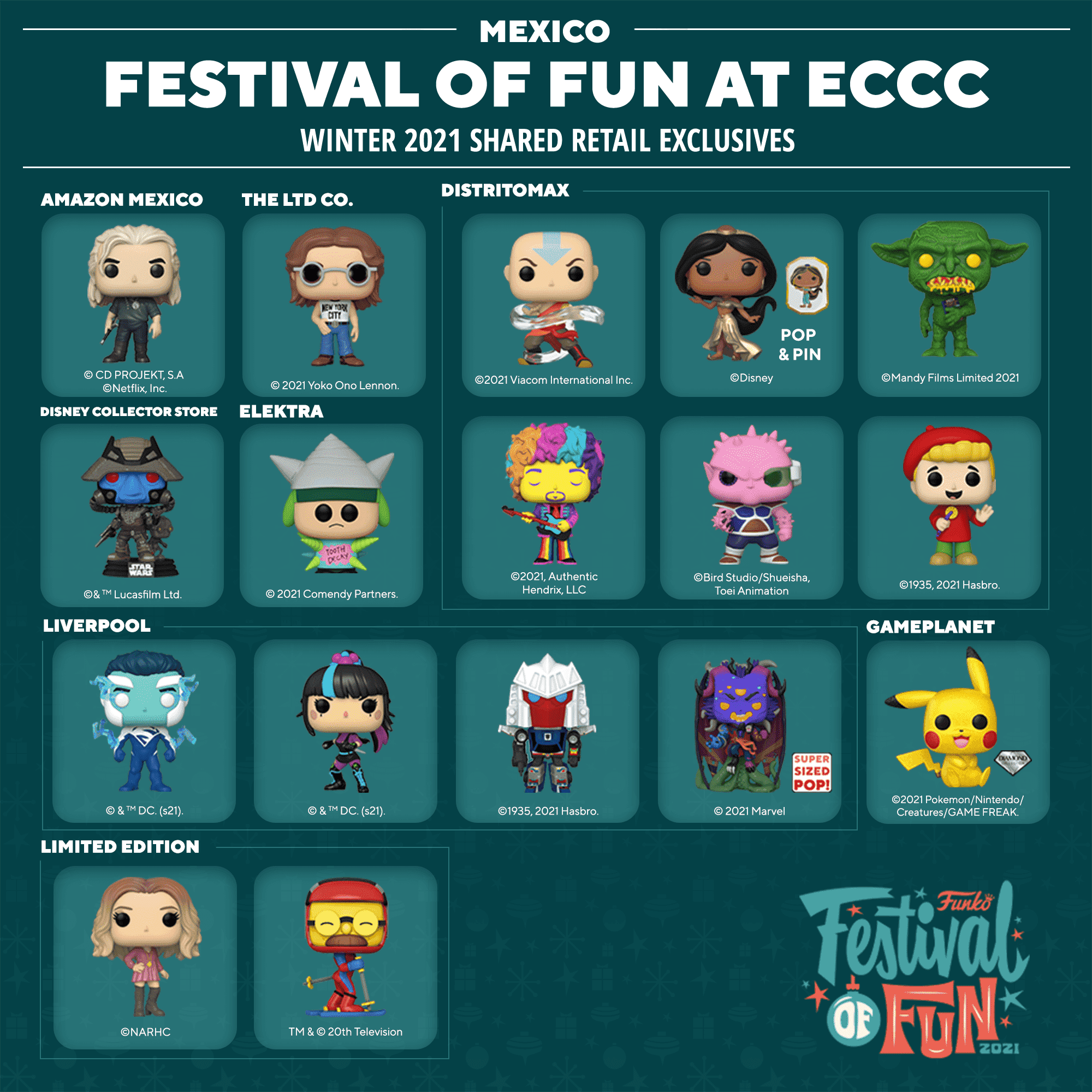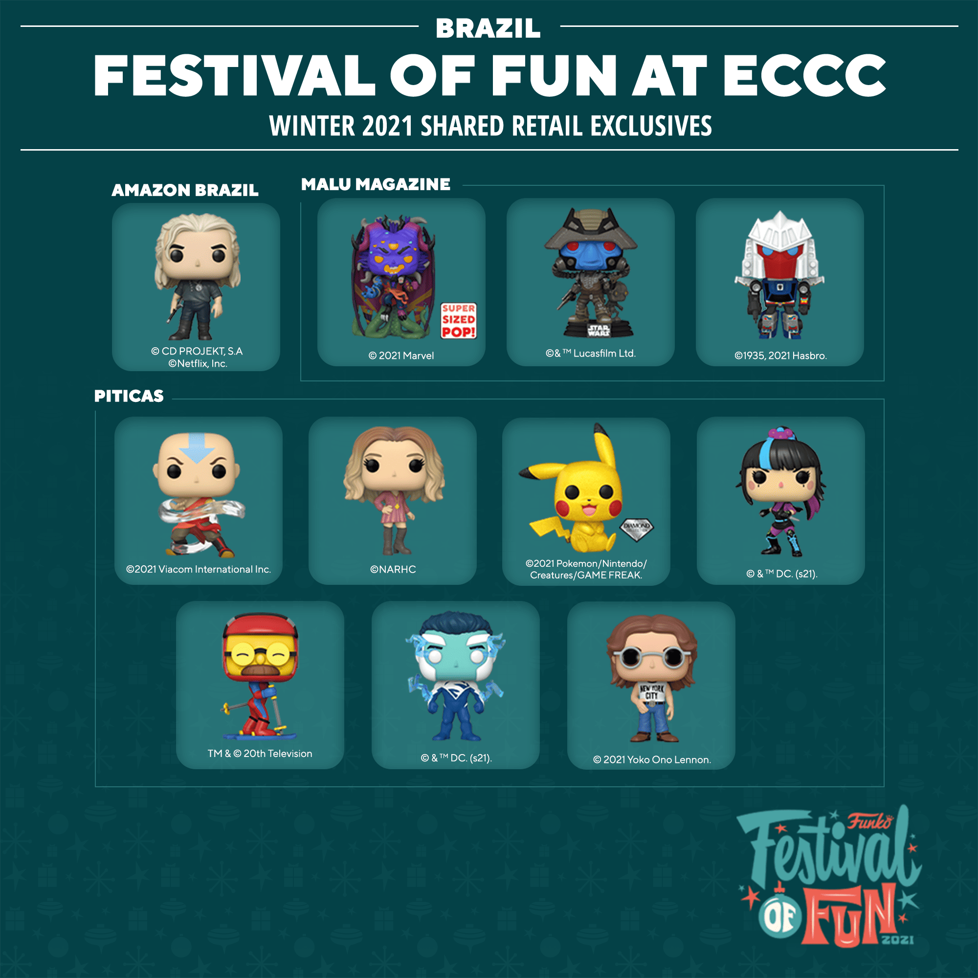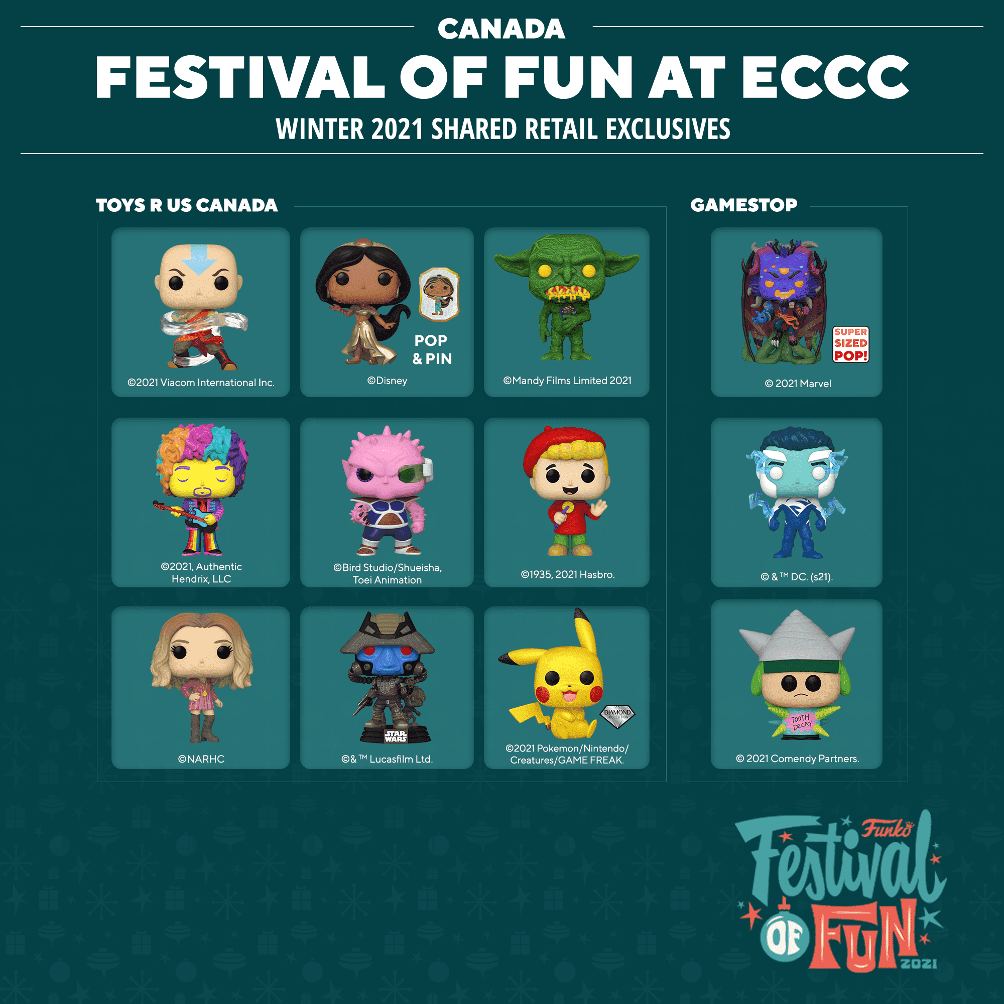 Aside from being available at the Funko Booth during ECCC, Festival of Fun exclusive products will be made available for sale on Funko.com, at Funko flagship stores, and via select retail partners. Select Shared Exclusives will be available to the public starting as early as 6am PT on December 3rd on Funko.com and through respective shared retailer sites and stores.