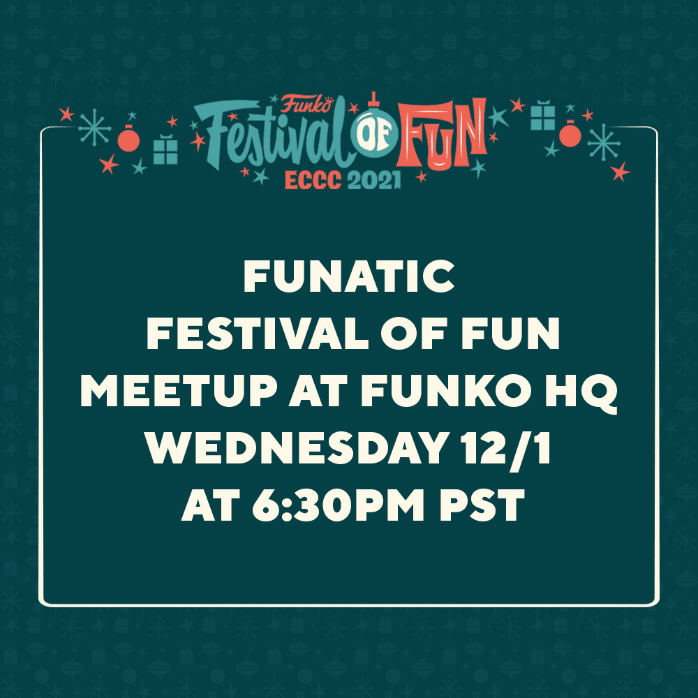 On December 1st, 2021 at 6:30 PM PT we're hosting a ticketed meet up event at Funko HQ! Tickets are $25 each and are required for entry to the meet up event. Click through for tickets and more information about the 2021 Funko HQ Meet Up. There will be additional games and giveaways during this meet up which you won't want to miss!