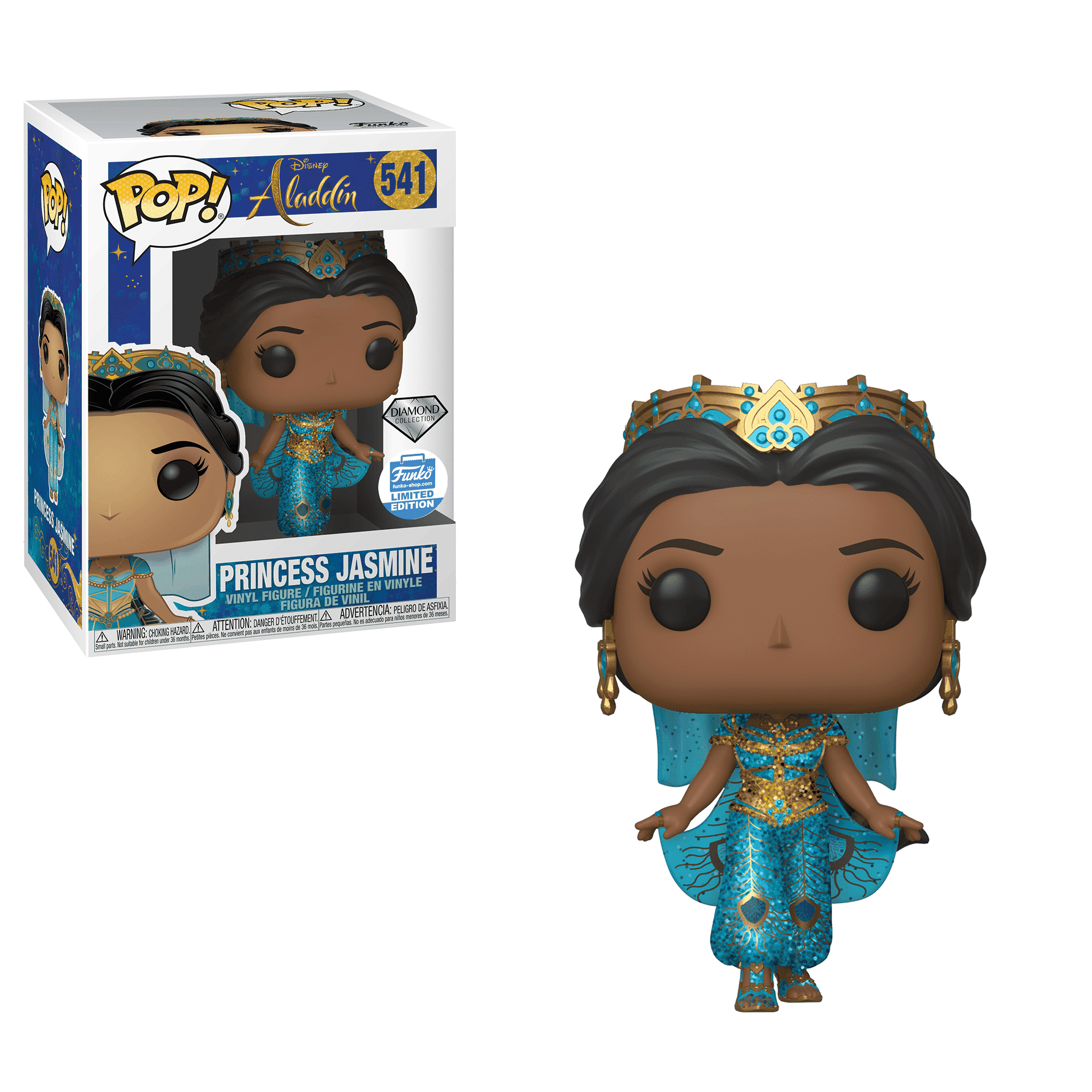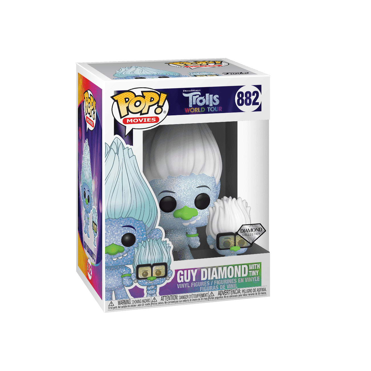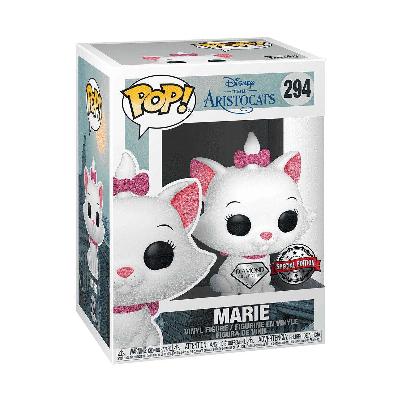 Some Pops! are made with a special glitter coating, adding a sparkle to your collection. Diamond edition Pop! Guy Diamond with Tiny of the Trolls World Tour collection, Pop! Princess Jasmine of the Aladdin collection, and Pop! Marie of the Aristocats collection are great examples.