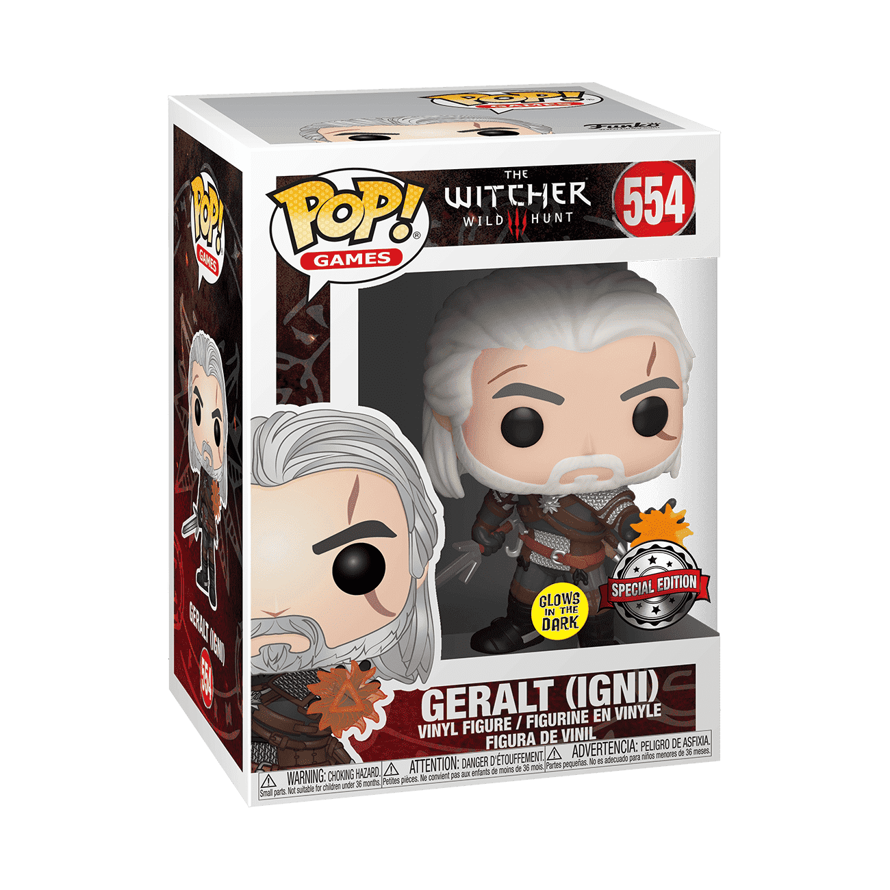This variant may not be visibly discernible at first, since it may look very similar to a different version of the same character, but in the dark you'll be able to see the figure start to glow. Some figures glow all over while others have specific areas that glow, creating an interesting silhouette in the dark. Check out figures like Pop! Geralt of The Witcher Wild Hunt collection or Pop! Glo Worm of the Retro Toys collection.