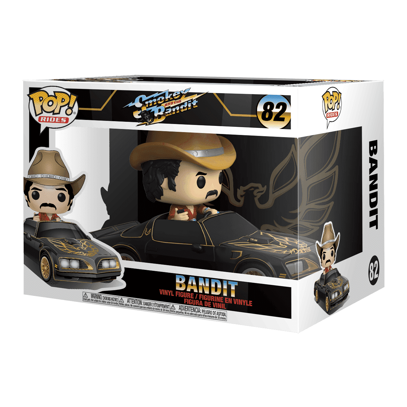 As their name suggests, Pop! Rides involve a character and some sort of vehicle or mode of transportation. There are three sizes of Pop! Rides including: standard Pop! Ride, Pop! Ride Deluxe, Pop! Trains, and Pop! Ride Super Deluxe. Pop! Ride Skeletor on Panthor, Pop! Ride Bandit with Trans Am, and Pop! Ride Ukrainian Ironbelly with Harry, Ron, and Hermione are good examples.