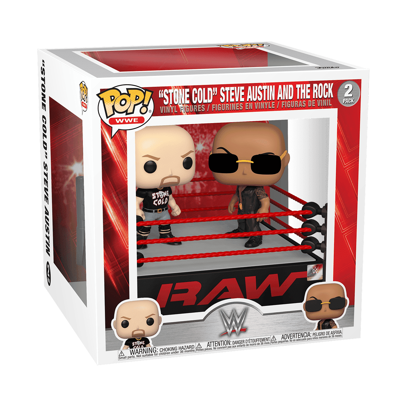 Whether the scene is from a TV show, movie, game, or a different popular culture source, these large figures depict multiple characters "acting out" a scene while fixed to their base. These are typically figures made to commemorate epic moments from their source material like Pop! Harry Potter versus Voldemort (Harry Potter collection), Pop! Banquet Room - Ghostbusters (The Ghostbusters collection), and Pop! "Stone Cold" Steve Austin and The Rock (WWE set).