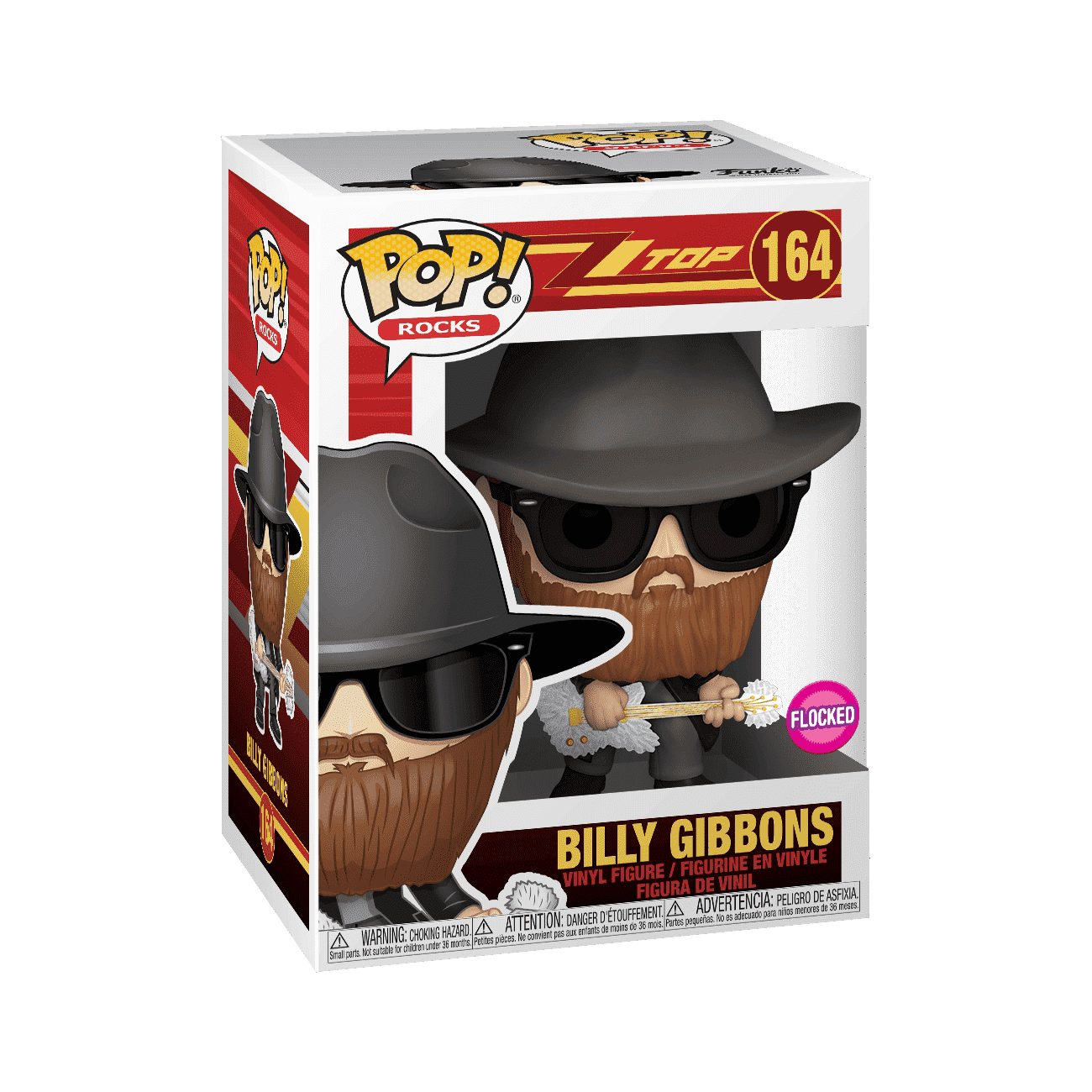 When a figure is "flocked" that means that instead of the usual smooth, vinyl texture, the figure has been coated with a soft, fuzzy texture. Check out flocked Pop! figures such as Dusty Hill and Billy Gibbons of the Pop! Music ZZ Top lineup, and Pop! Chewbacca.