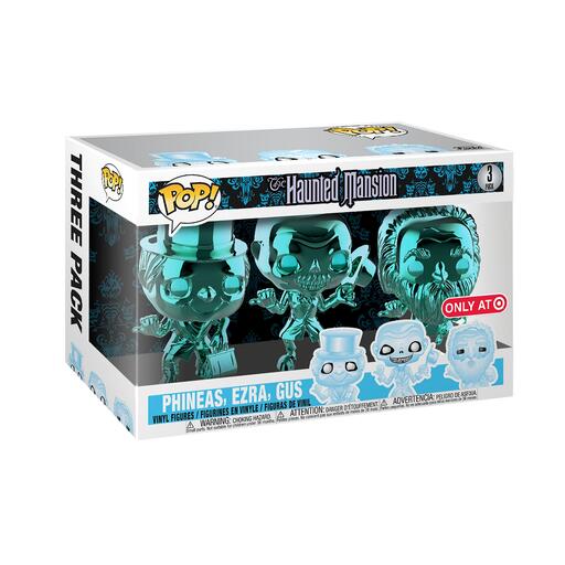 Typically coated in one color of chrome paint, this variant of Pop! can add a ghostly or trophy-like quality to your collection. The Haunted Mansion 3-pack of chrome Pop! Phineas, Ezra, and Gus are must have figures for Disney and chrome collectors. There's also favorites like gold chrome Pop! Loki and chrome Pop! Jack Jack (The Incredibles collection).