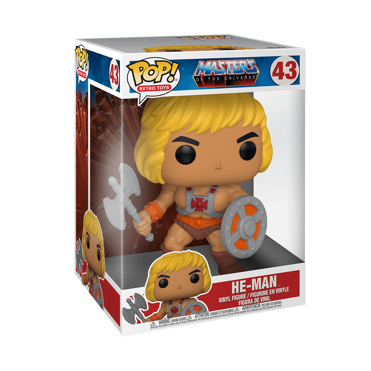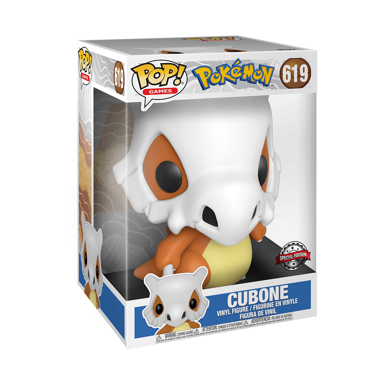 Jumbo Pops! are 10-inches tall. Available Jumbo Pops! include: Jumbo Pop! He-Man of the Masters of the Universe collection, Jumbo Pop! Cubone of the Pokémon set, and Jumbo Pop! The Mandalorian with Child of the Star Wars™: The Mandalorian™ collection.