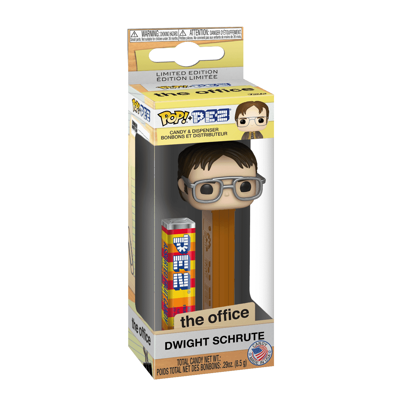 Enjoy Pez candy from a Funko Pop! stylized dispenser with some of your favorite figures such as Pop! Pez Bigfoot (Myth collection), Pop! Pez Cavity Sam (Retro Toys set), and Pop! Pez Dwight Schrute (The Office collection). These collectible candy dispensers are approximately 4.5-inches tall.