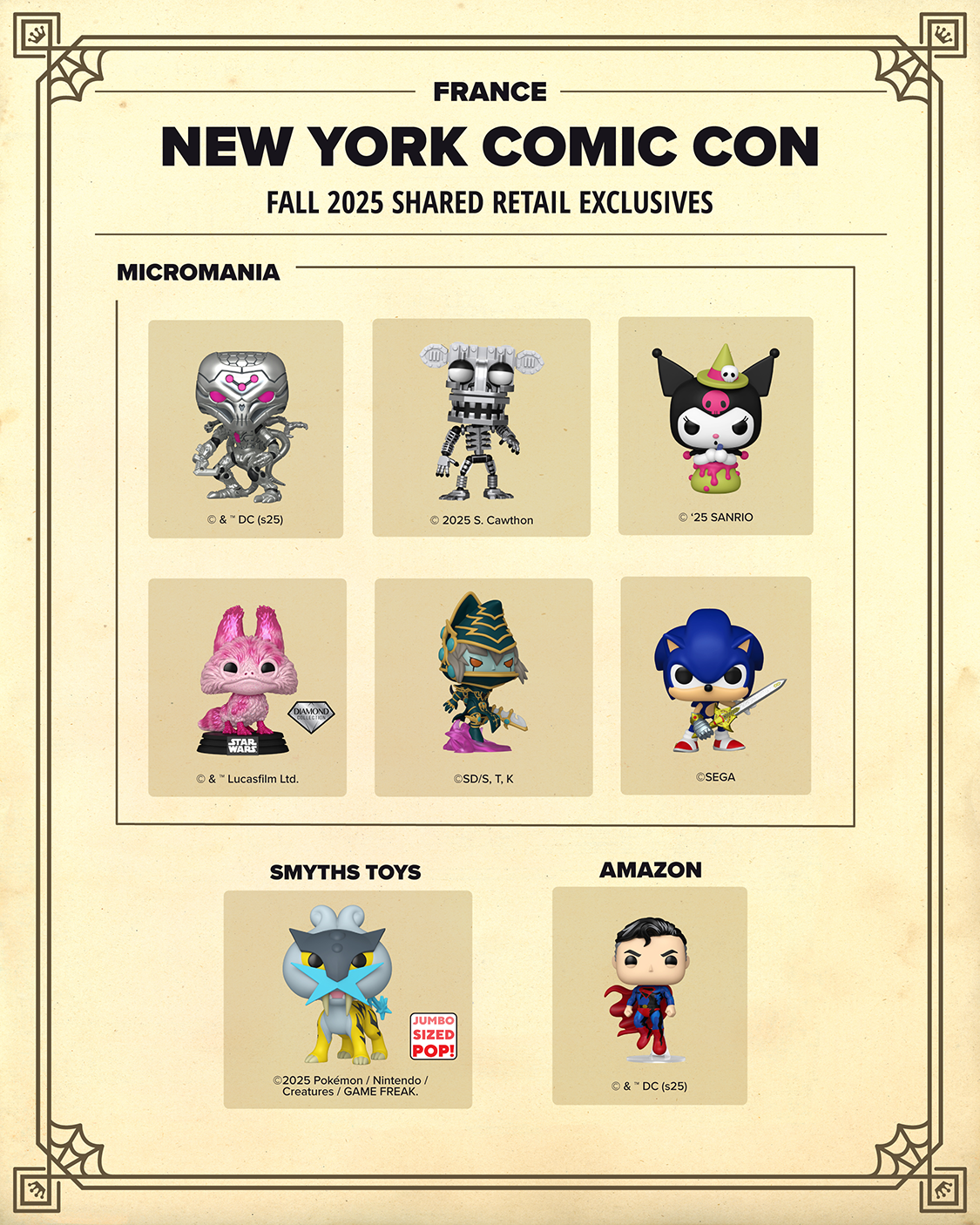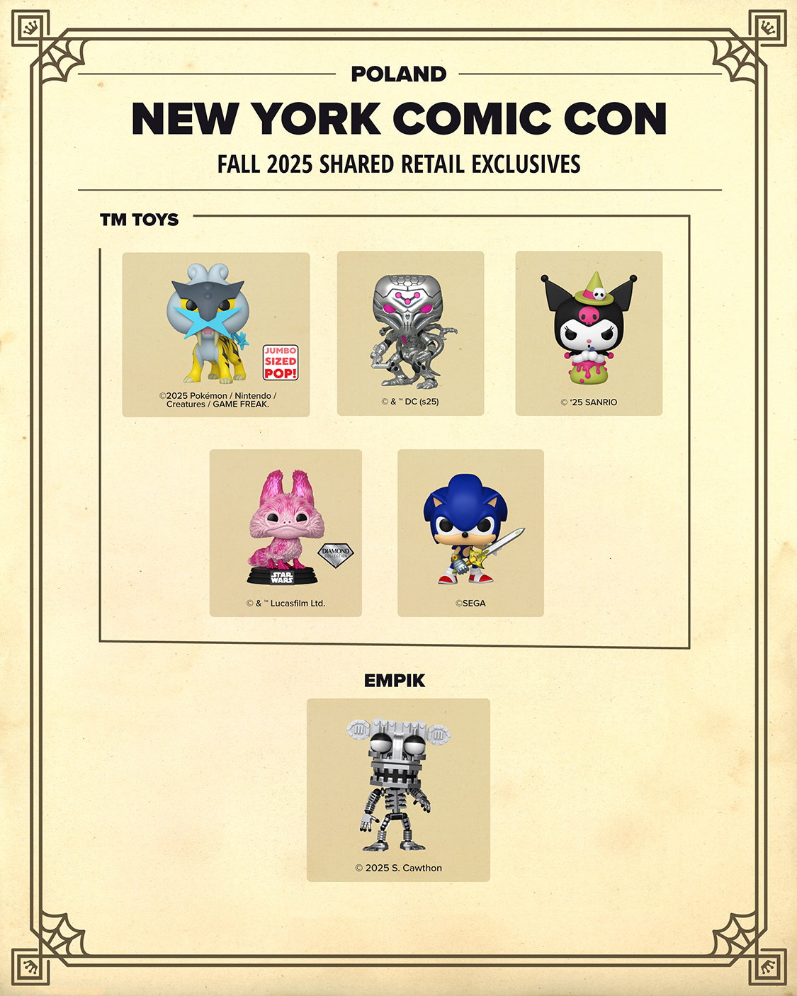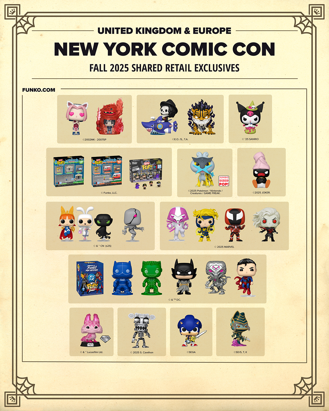 NYCC exclusives will be available on Funko.com at 4pm BST on Thursday, October 9th, 2025. There will not be a lottery to purchase event exclusives on Funko.com. There will be a waiting room at checkout to serve customers on a first come, first served basis.
