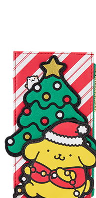 Solid Light Blue background with model showcasing Loungefly Disney Mickey & Friends Holiday collection