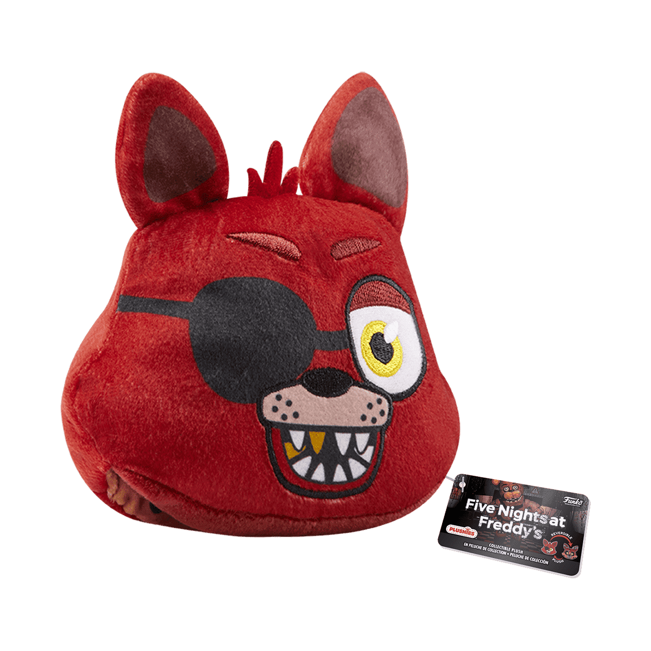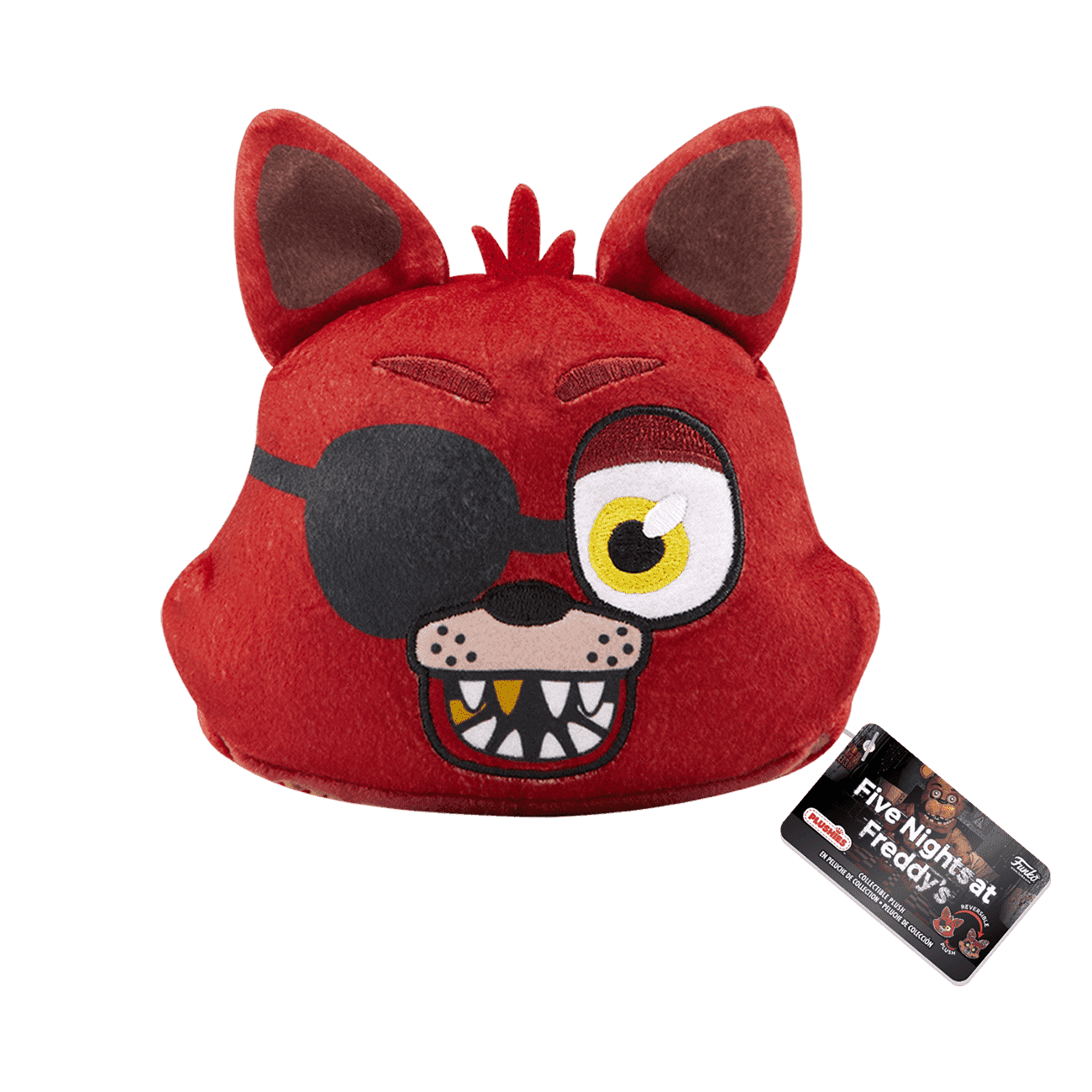 Jump ahead of the game and bring home this Five Nights at Freddy’s Foxy Reversible Head Plush. Foxy’s animatronic face becomes Nightmare Foxy when you turn the plush head inside out. This Foxy Reversible Head Plush adds a new twist as a killer cuddly addition to your FNAF collection.