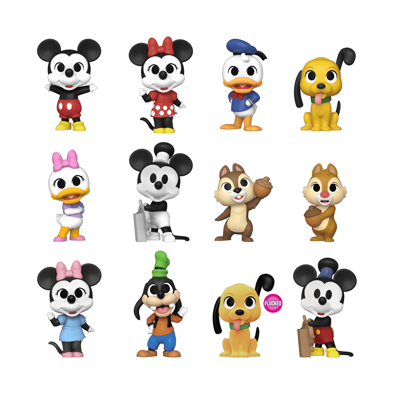 Oh, boy! The gang’s all here. Bring the magic and wonder of classic Disney with the Mickey Mouse Disney Classics Mystery Minis. Which one will you find? There’s Mickey, Minnie, Donald, Pluto, Daisy Duck, Steamboat Willie (black and white), Chip, Dale, Minnie Mouse (in blue/pink), Goofy, Pluto (flocked), and Steamboat Willie (in colour). Vinyl figures range in height depending on character, from approximately 5.7 cm to 7.6 cm tall. Please note: Item selection is random, as each piece is in blind packaging. We cannot accept requests for specific items. You may receive duplicate figures.