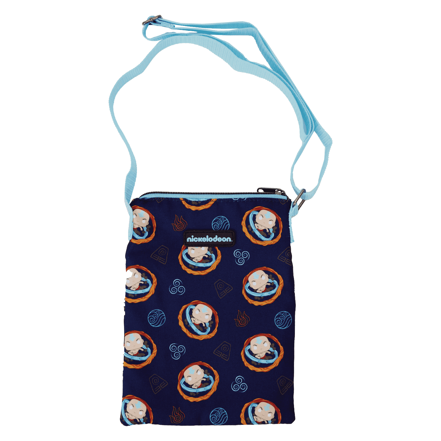 Restore balance to the world with the Funko Pop! Avatar: The Last Airbender Aang Passport Bag! This bag features an allover print of Avatar Aang wielding all four elements, accompanied by water, earth, fire, and air motifs, against a navy background with light blue accents. This awesome accessory has plenty of room for holding all your belongings as you travel the world on your sky bison!