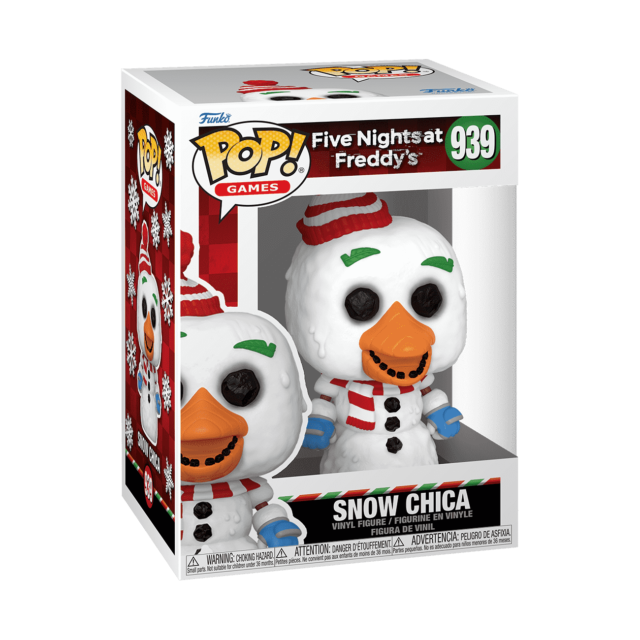 Close in on the frightfully festive Five Nights at Freddy’s: Holiday Season™ characters before they move! Catch Pop! Snow Chica from Five Nights at Freddy’s in action. Will your collection survive the addition of this Five Night's at Freddy's character? Vinyl figure is approximately 4.9 in (12.4 cm) tall.